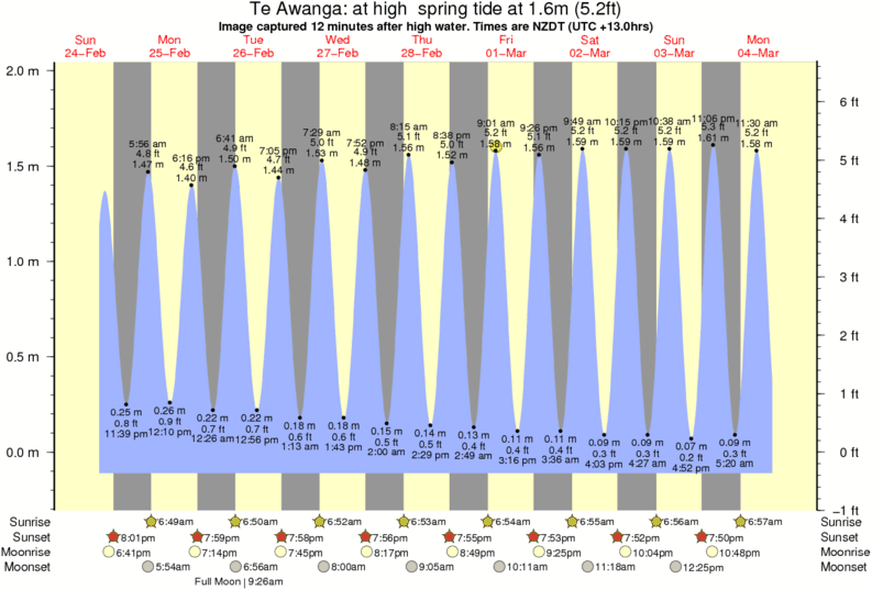Image captured 12 minutes after high water (at high spring tide). Tide height was 1.6m (5.2 ft). Range 1.96m (6.4 ft). Toggle tide graph