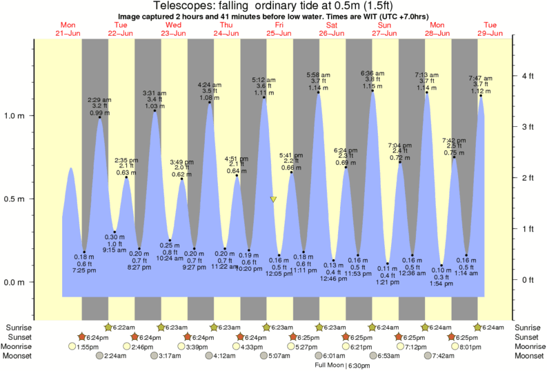 Image captured 2 hours and 41 minutes before low water (falling ordinary tide). Tide height was 0.5m (1.5 ft). Range 1.41m (4.6 ft). Toggle tide graph