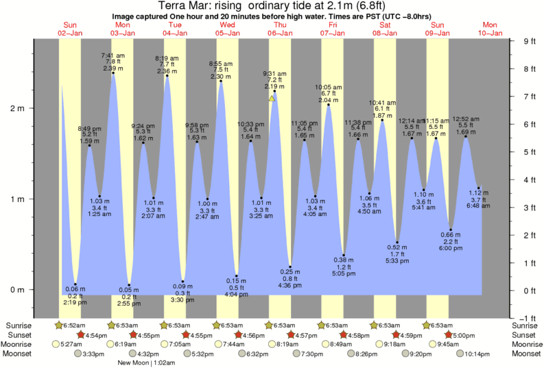 Image captured One hour and 20 minutes before high water (rising ordinary tide). Tide height was 2.1m (6.8 ft). Range 2.57m (8.4 ft). Toggle tide graph