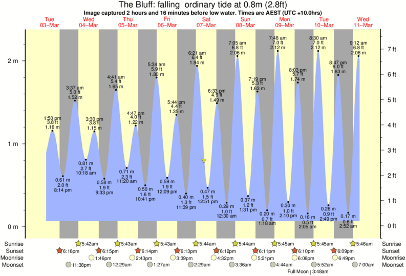 Image captured 2 hours and 16 minutes before low water (falling ordinary tide). Tide height was 0.8m (2.8 ft). Range 2.10m (6.9 ft). Toggle tide graph