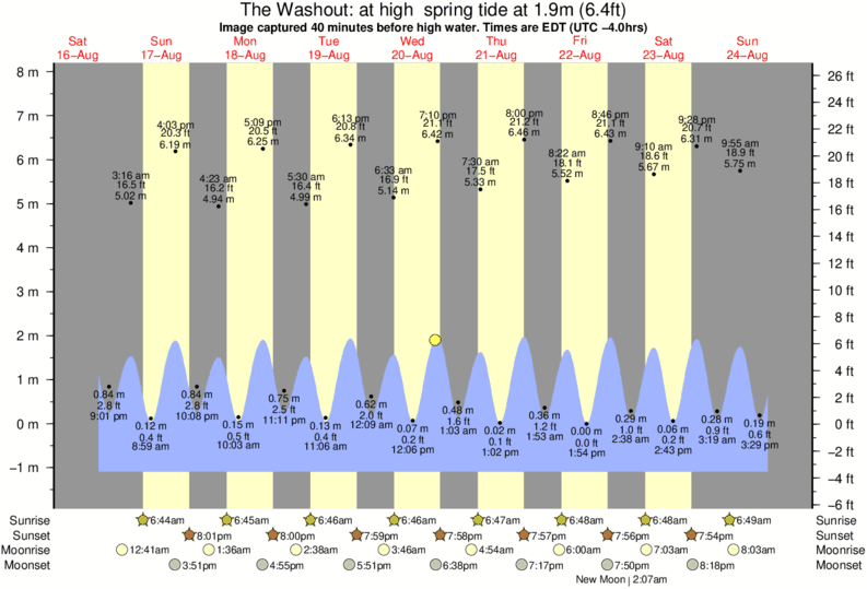 Image captured 40 minutes before high water (at high spring tide). Tide height was 1.9m (6.4 ft). Range 8.45m (27.7 ft). Toggle tide graph