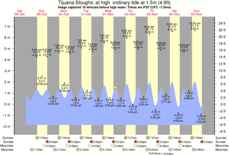 Forecast wind and swell just offshore from Tijuana Sloughs around the time the photo was taken
