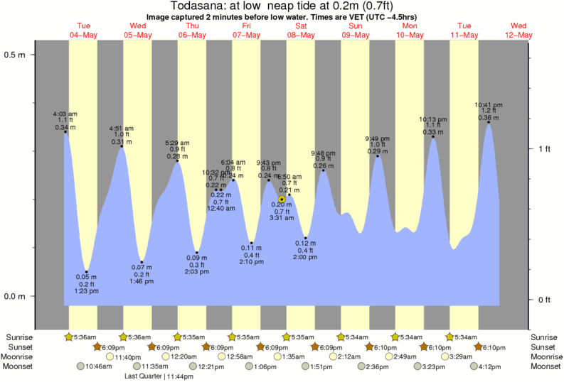 Image captured 2 minutes before low water (at low neap tide). Tide height was 0.2m (0.7 ft). Range 0.50m (1.6 ft). Toggle tide graph