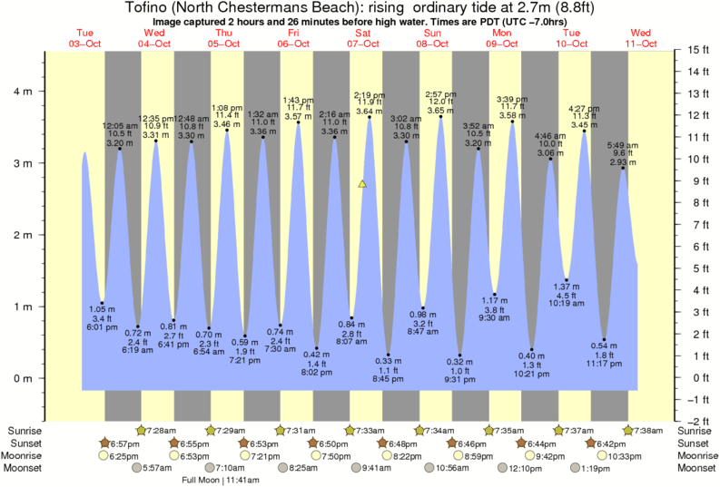 Forecast wind and swell just offshore from Tofino (North Chestermans Beach) around the time the photo was taken