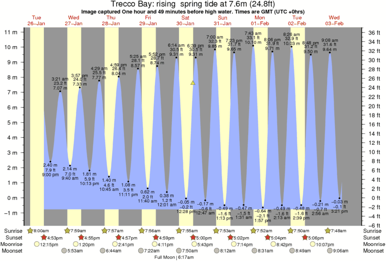Image captured One hour and 49 minutes before high water (rising spring tide). Tide height was 7.6m (24.8 ft). Range 10.97m (36.0 ft). Toggle tide graph