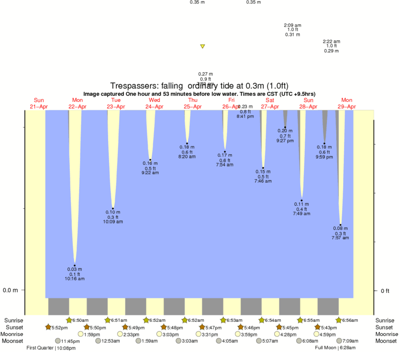 Image captured One hour and 53 minutes before low water (falling ordinary tide). Tide height was 0.3m (1.0 ft). Range 0.21m (0.7 ft). Toggle tide graph