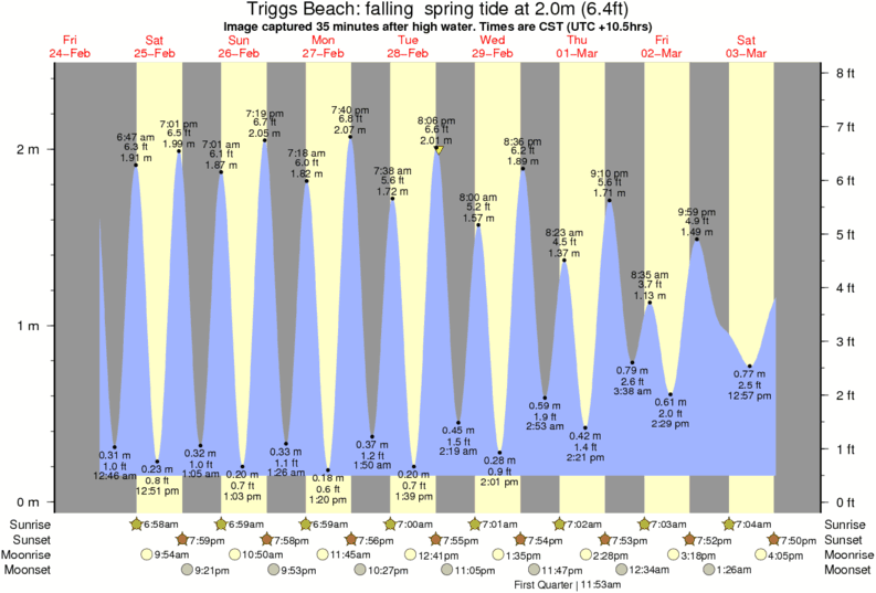 Image captured 35 minutes after high water (falling spring tide). Tide height was 2.0m (6.4 ft). Range 2.13m (7.0 ft). Toggle tide graph