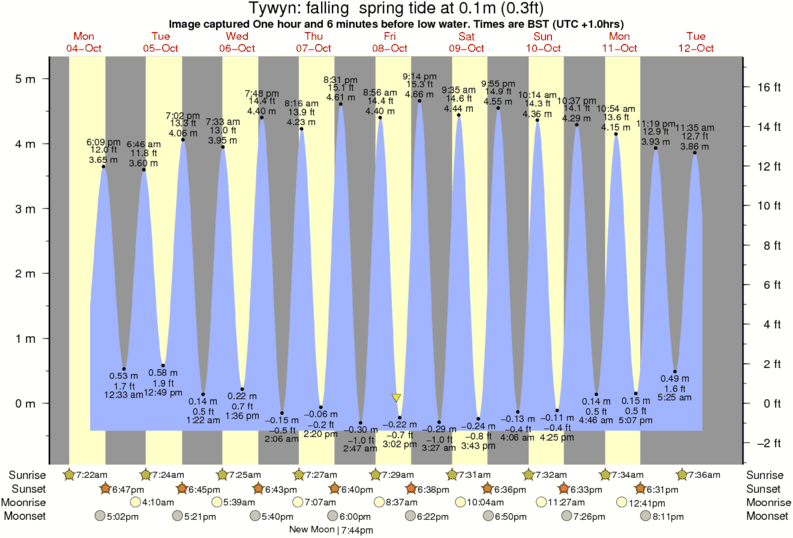 Image captured One hour and 6 minutes before low water (falling spring tide). Tide height was 0.1m (0.3 ft). Range 5.24m (17.2 ft). Toggle tide graph