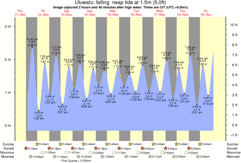 Image captured 2 hours and 40 minutes after high water (falling neap tide). Tide height was 1.5m (5.0 ft). Range 3.13m (10.3 ft). Toggle tide graph