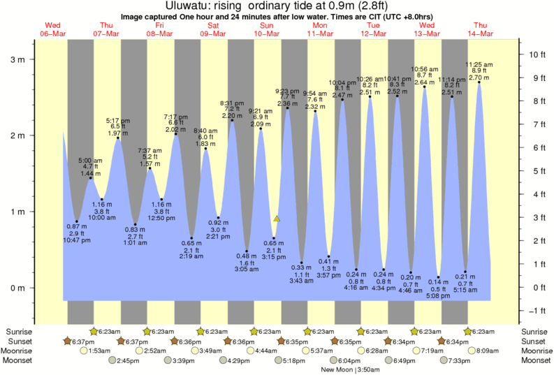 Image captured One hour and 24 minutes after low water (rising ordinary tide). Tide height was 0.9m (2.8 ft). Range 3.12m (10.2 ft). Toggle tide graph