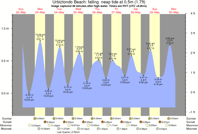 Forecast wind and swell just offshore from Urbiztondo Beach around the time the photo was taken