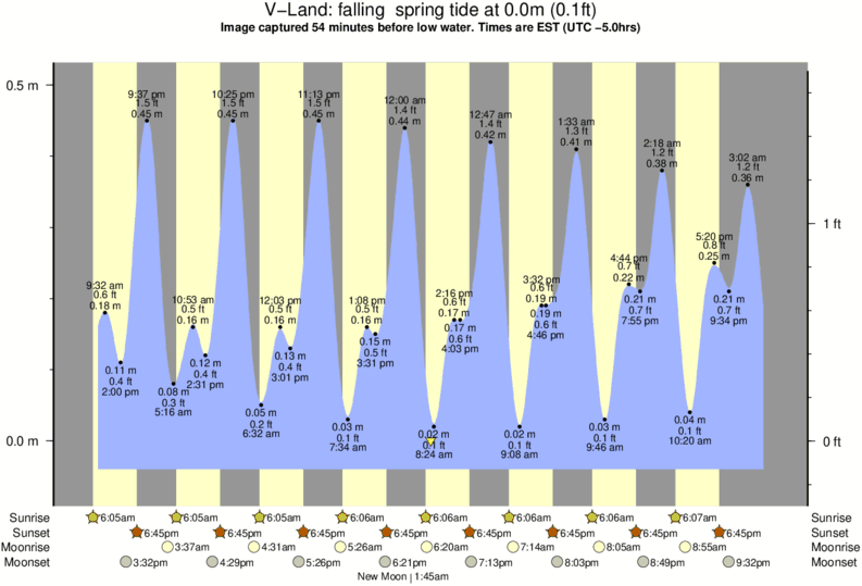 Image captured 54 minutes before low water (falling spring tide). Tide height was 0.0m (0.1 ft). Range 0.52m (1.7 ft). Toggle tide graph