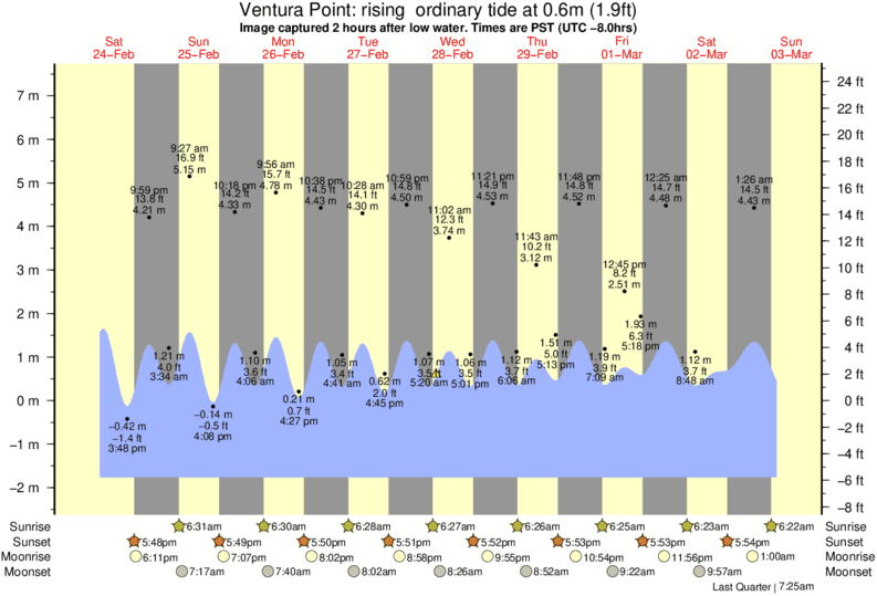 Forecast wind and swell just offshore from Ventura Point around the time the photo was taken
