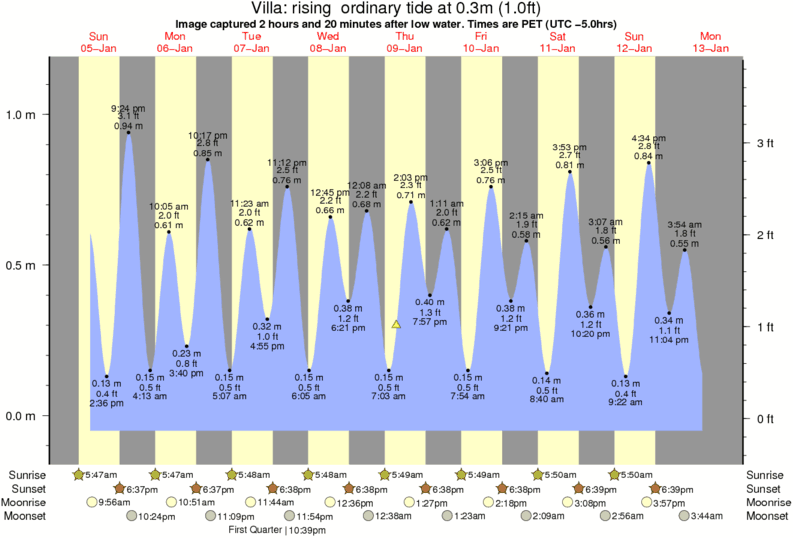 Image captured 2 hours and 20 minutes after low water (rising ordinary tide). Tide height was 0.3m (1.0 ft). Range 1.13m (3.7 ft). Toggle tide graph