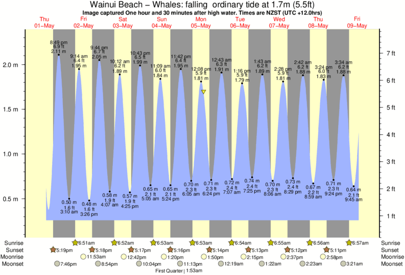 Forecast wind and swell just offshore from Wainui Beach - Whales around the time the photo was taken