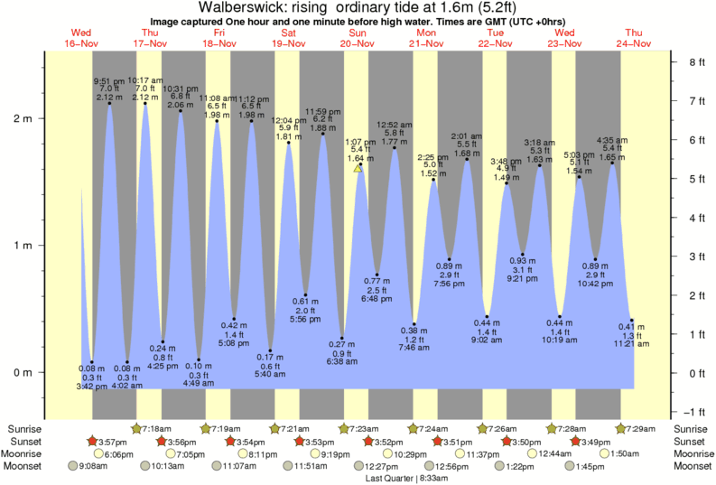 Image captured One hour and one minute before high water (rising ordinary tide). Tide height was 1.6m (5.2 ft). Range 2.42m (7.9 ft). Toggle tide graph
