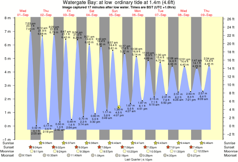 Image captured 24 minutes after low water (at low ordinary tide). Tide height was 1.4m (4.6 ft). Range 7.57m (24.8 ft). Toggle tide graph