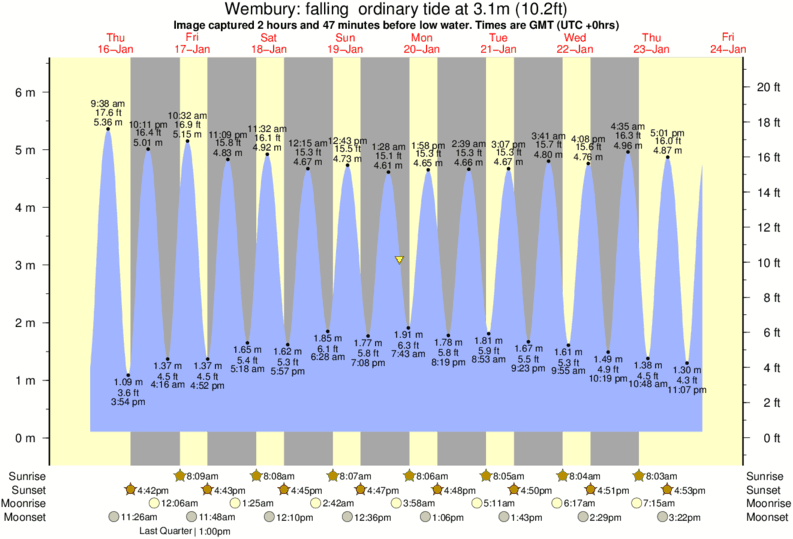 Image captured 2 hours and 47 minutes before low water (falling ordinary tide). Tide height was 3.1m (10.2 ft). Range 5.90m (19.4 ft). Toggle tide graph