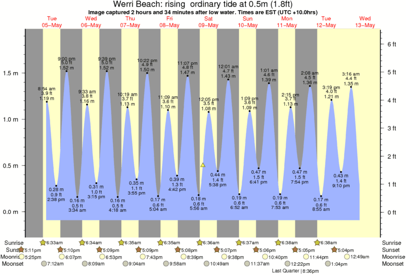 Image captured 2 hours and 34 minutes after low water (rising ordinary tide). Tide height was 0.5m (1.8 ft). Range 1.88m (6.2 ft). Toggle tide graph