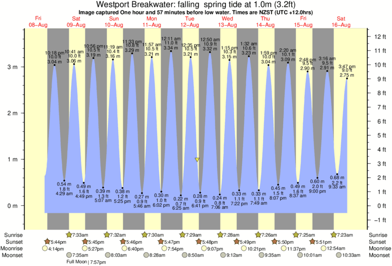 Image captured One hour and 57 minutes before low water (falling spring tide). Tide height was 1.0m (3.2 ft). Range 3.63m (11.9 ft). Toggle tide graph