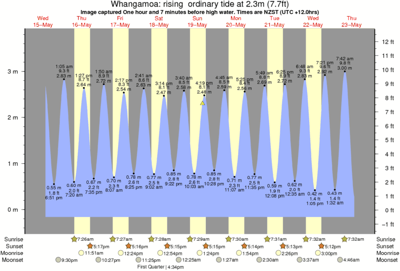 Forecast wind and swell just offshore from Whangamoa around the time the photo was taken
