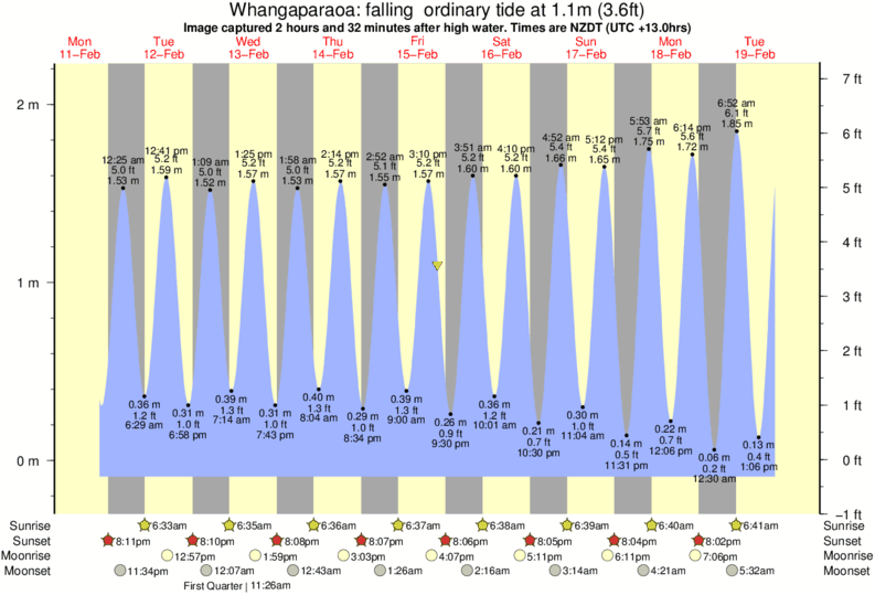 Image captured 2 hours and 32 minutes after high water (falling ordinary tide). Tide height was 1.1m (3.6 ft). Range 2.11m (6.9 ft). Toggle tide graph