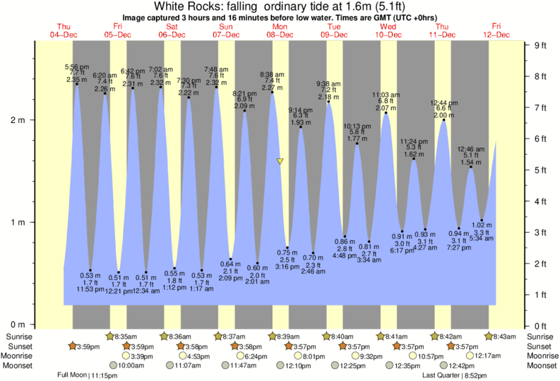 Image captured 3 hours and 16 minutes before low water (falling ordinary tide). Tide height was 1.6m (5.1 ft). Range 2.35m (7.7 ft). Toggle tide graph