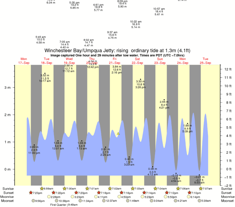 Forecast wind and swell just offshore from Winchesteer Bay/Umpqua Jetty around the time the photo was taken