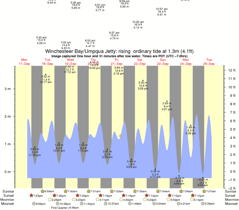 Forecast wind and swell just offshore from Winchesteer Bay/Umpqua Jetty around the time the photo was taken