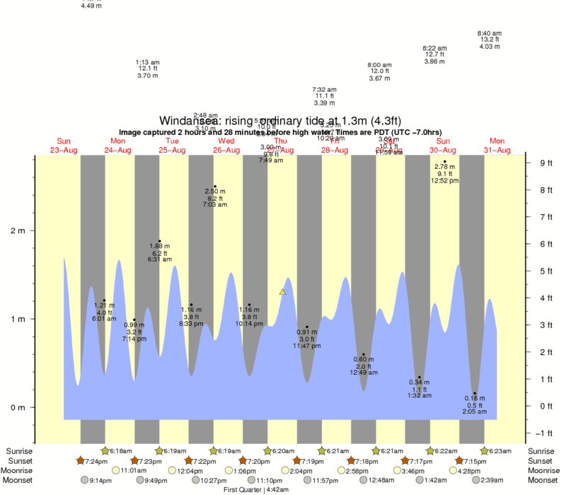Image captured 2 hours and 28 minutes before high water (rising ordinary tide). Tide height was 1.3m (4.3 ft). Range 2.72m (8.9 ft). Toggle tide graph
