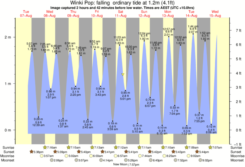 Image captured 2 hours and 42 minutes before low water (falling ordinary tide). Tide height was 1.2m (4.1 ft). Range 2.27m (7.4 ft). Toggle tide graph