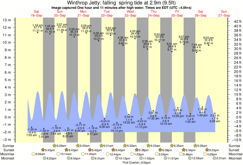 Image captured One hour and 11 minutes after high water (falling spring tide). Tide height was 2.9m (9.5 ft). Range 13.94m (45.7 ft). Toggle tide graph