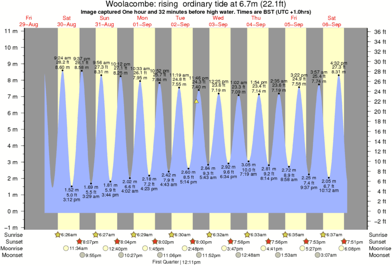 Image captured One hour and 32 minutes before high water (rising ordinary tide). Tide height was 6.7m (22.1 ft). Range 10.27m (33.7 ft). Toggle tide graph