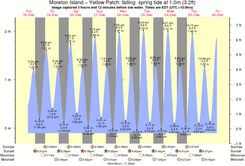 Forecast wind and swell just offshore from Moreton Island - Yellow Patch around the time the photo was taken