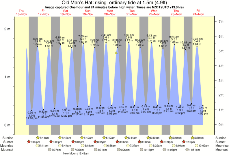 Forecast wind and swell just offshore from Old Man's Hat around the time the photo was taken